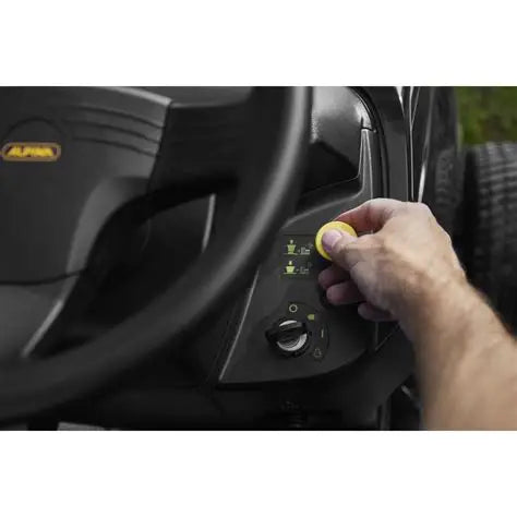 Auch der Komfort kommt beim Alpina AT3 98 A nicht zu kurz. Das ergonomische Lenkrad sorgt für ein sehr gutes Fahrerlebnis. Der Alpina Smart-Sitz mit Unterstützung für den unteren Rückenbereich ermöglicht stundenlanges, ermüdungsfreies Mähen.