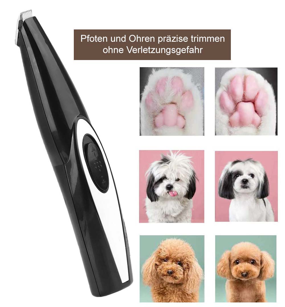 - Achte darauf, dass der Trimmer NICHT in die Augen oder Ohren gelangt und drücke den Trimmer NICHT fest auf die Haut deines Vierbeiners